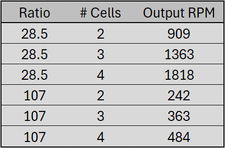 - 28.5:1 Drive with 4mm shaft - 24.7g